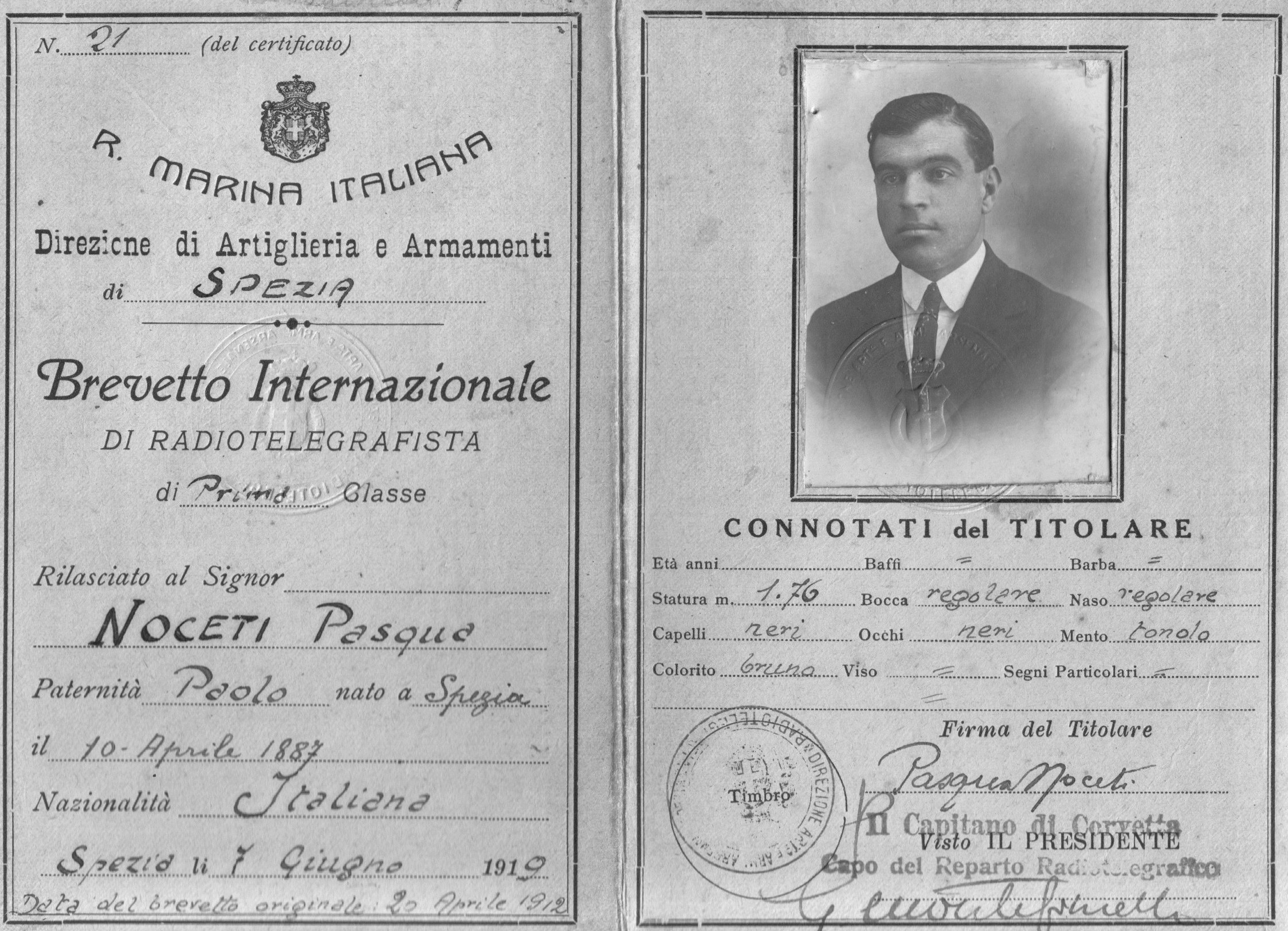 di Prima Classe il 20 aprile 1912 e conoscendo